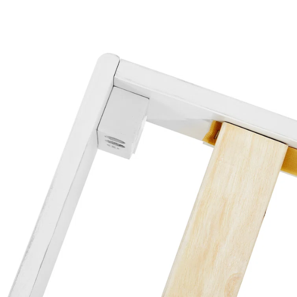 Premium solid acacia wood frame with a modern white finish for durability and timeless charm