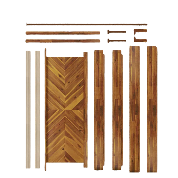 Upgrade your bedroom with this Rustic Solid Wood Golden Honey Brown Acacia King Bed, a masterpiece of durability, craftsmanship, and timeless style. Handcrafted from 100% solid acacia wood, this king platform bed features a beautiful golden honey brown finish that highlights the natural variations, knots, and unique wood grain patterns of acacia. The centerpiece is its geometric herringbone headboard, adding refined character and modern elegance to your sleeping space.