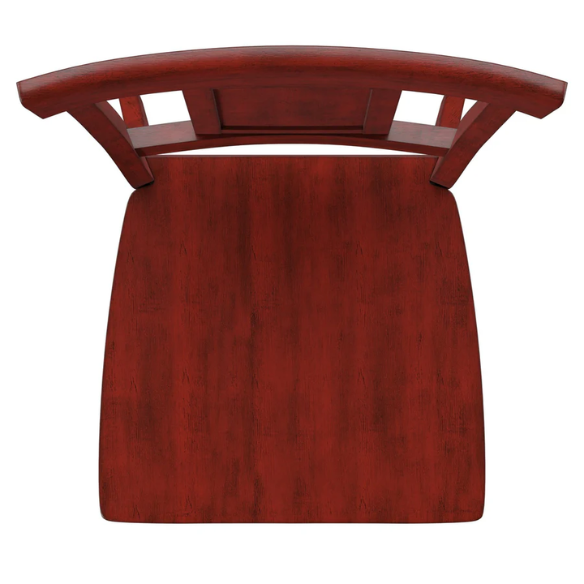 Infuse your dining space with bold warmth and timeless character using this set of two cherry red wood dining chairs. Crafted from sturdy, eco-conscious rubberwood, these chairs feature a contoured seat and a traditional slat-back silhouette, blending classic craftsmanship with vibrant personality.