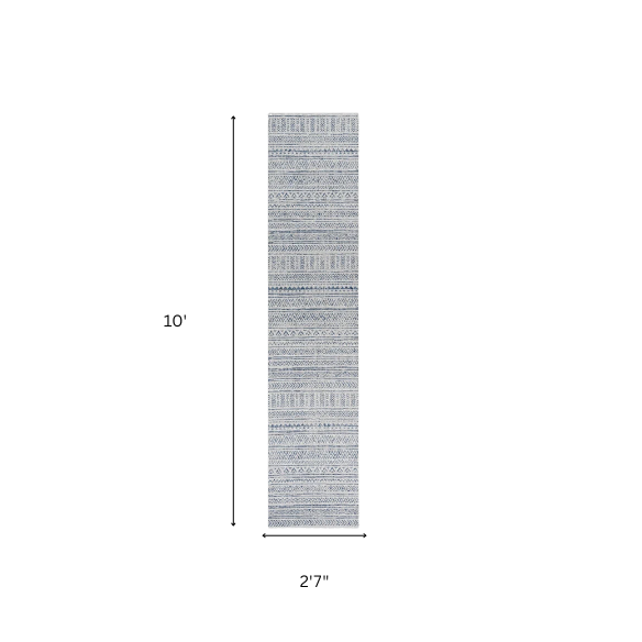 Blue & Cream White Geometric Indoor/Outdoor Runner Area Rug – Stain Resistant & Durable