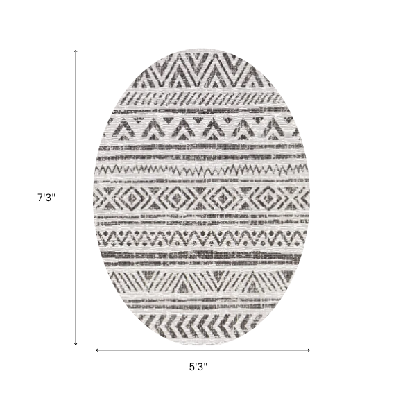 Add a touch of modern boho flair to your space with this charcoal and off-white indoor/outdoor area rug. Showcasing a distressed geometric pattern with Moroccan-inspired chevrons and diamond motifs, this rug effortlessly balances bold design with a neutral palette. The contrast between rich charcoal and soft off-white brings depth and dimension to any area—whether you're decorating a cozy entryway, chic living room, or relaxed patio.