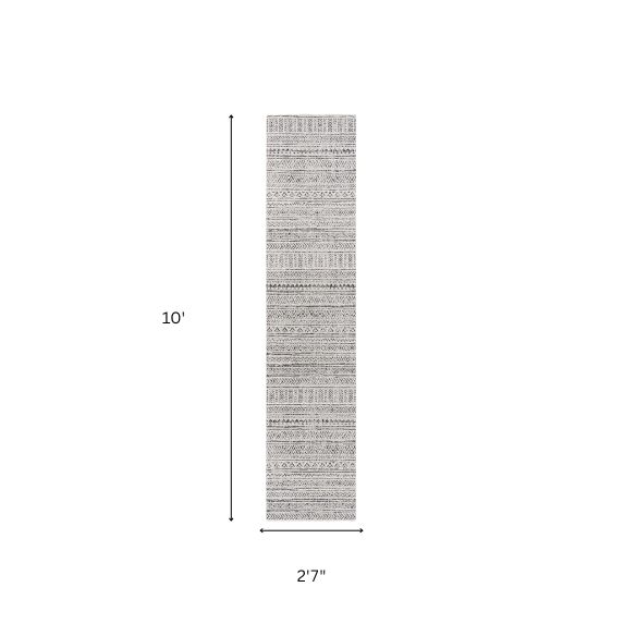 Add a touch of modern boho flair to your space with this charcoal and off-white indoor/outdoor runner rug. Showcasing a distressed geometric pattern with Moroccan-inspired chevrons and diamond motifs, this rug effortlessly balances bold design with a neutral palette. The contrast between rich charcoal and soft off-white brings depth and dimension to any area—perfect for hallways, entryways, kitchens, or along outdoor walkways.