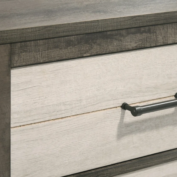 Transform your bedroom into a warm and inviting retreat with this two-tone brown and cream queen bedroom set. Blending modern functionality with timeless elegance, this collection is crafted with durable manufactured wood and finished with a sleek contrast of deep brown tones and soft cream accents. The set includes everything you need to create a coordinated and stylish space, complete with storage and practical features.