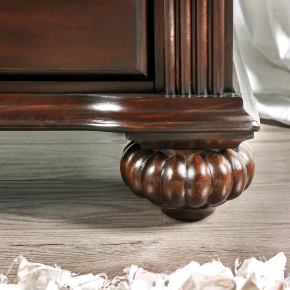 Traditional Walnut 3-Piece Queen Bedroom Set – Elegant Solid Wood Construction with Floral Carved Headboard, Antique Brass Accents, and Ample Storage