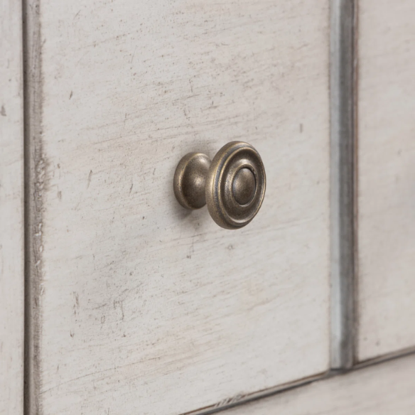 Completing the set, the 5-drawer chest provides versatile storage with multiple drawer sizes, giving the illusion of additional compartments while maintaining a clean, streamlined look. Thoughtful touches like antique brass hardware, dovetail drawer construction, and dust-proofed bottoms ensure long-lasting beauty and performance.