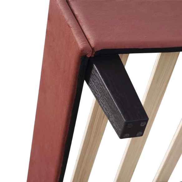 This deep blush velvet platform bed is designed to make a bold impression. With a beautifully upholstered floral-patterned headboard, it combines artistry and comfort in one elegant piece. Perfect for adding romance and modern flair to your bedroom, this bed creates a cozy and stylish environment ideal for unwinding after a long day.