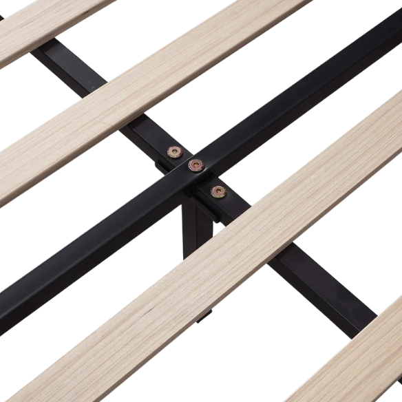 A sturdy slat system provides reliable mattress support, eliminating the need for a box spring and allowing for better airflow and longevity. -